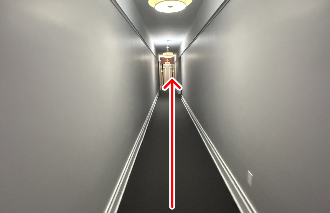 Exit the elevator and walk straight down the hallway. Turn right at the end of the hall, then walk straight down the next hallway to find unit #12.
